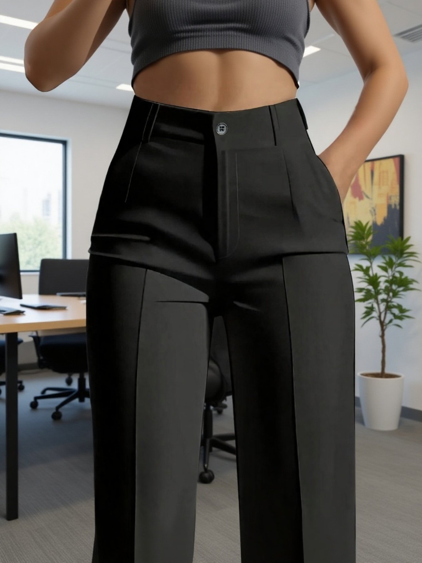 بنطال نسائي رسمي عالي الخصر بقصة مستقيمة