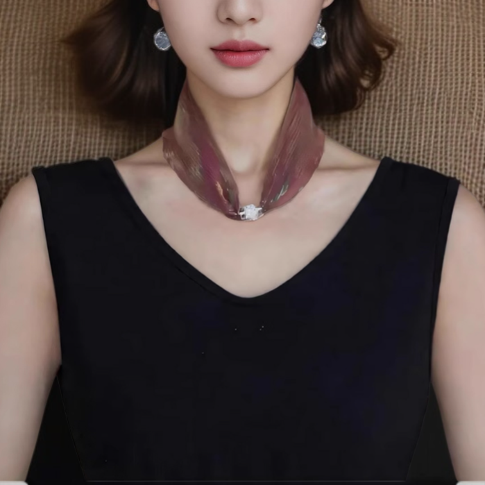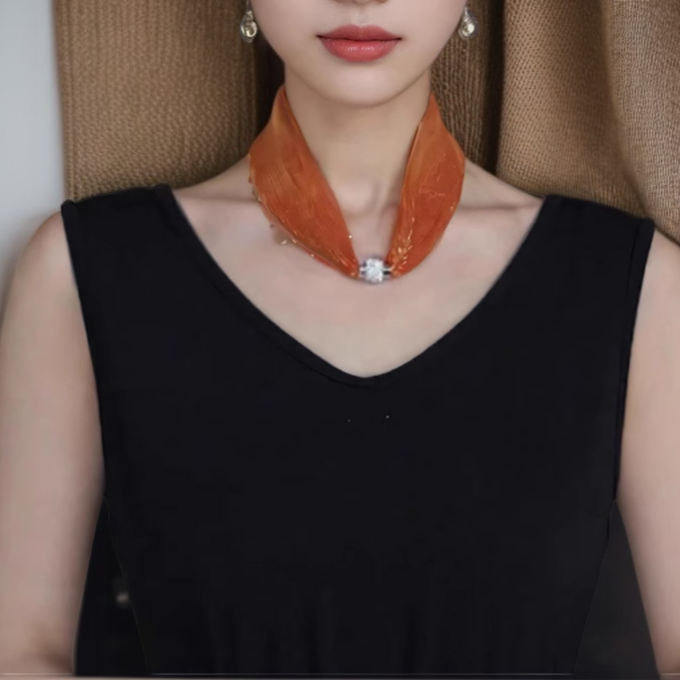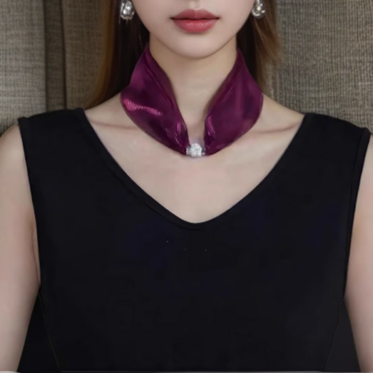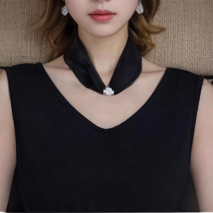 وشاح حريري متعدد الاستخدامات مع زر مغناطيسي ملون