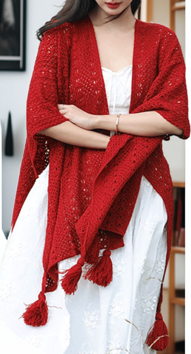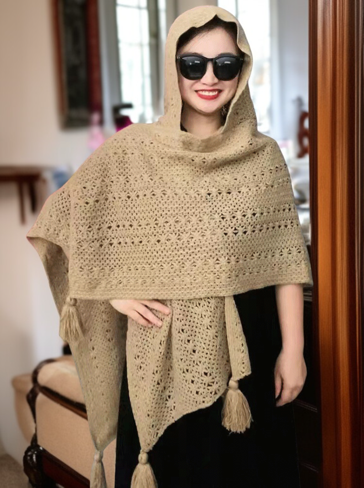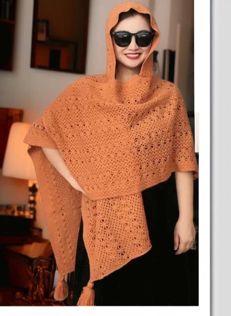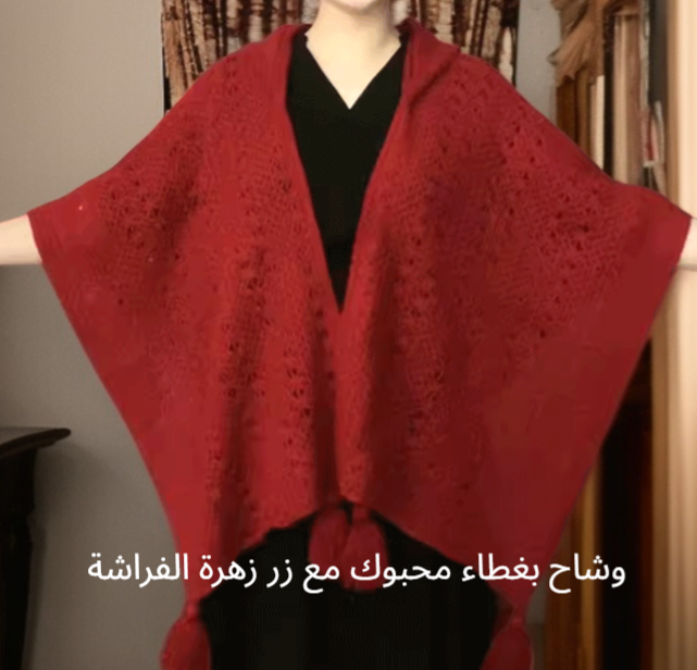 وشاح بغطاء محبوك مع زر زهرة الفراشة